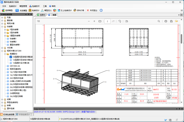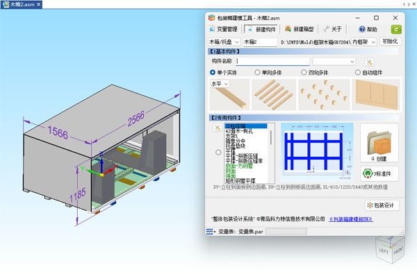 木包装箱设计系统是机电产品包装设计系统的一个主要子模块,包括托盘、围板箱、 常用木箱、 快装箱、 卡扣箱、 木制底盘、 大型框架木箱等木包装容器设计。 大型框架木箱设计目前支持日本JIS1403-2003和框架木箱亚洲统一标准等先进的国内外行业标准,进一步降低包装成本,软件使用的范围从20吨增加到60吨。